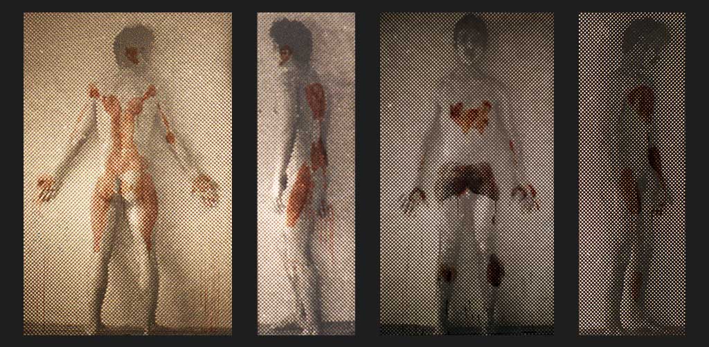 En 1995 participé en el taller de pintura que impartía Dario Urzay en Arteleku. No sabía muy bien en que iba a consistir mi proyecto, recientemente había utilizado mi cuerpo en varias series de trabajos y decidí seguir en esa línea. Pronto me di cuenta de la diferencia que había entre trabajar en mi propio estudio y hacerlo en un lugar público. Las mismas acciones dejaban de tener sentido. Cubrí mi cuerpo con pintura y lo utilicé como un rodillo a la vez que me fotografiaba. Los negativos fueron tramados y los positivos se hicieron en película para poder proyectarlos sobre las huellas. Las preguntas latentes en este trabajo fueron del tipo: ¿Es el cuerpo una máquina como proponía Descartes? ¿Es el usufructo de algo inmaterial? ¿Se trata de un organismo formado por partes o de una totalidad? ¿Cómo abordar su representación? Posteriormente, para dar una nueva dimensión al trabajo, más utilitaria y de corte sociológico, se utilizó una de las imágenes de la serie para realizar una tirada de litografías en las que se añadió el siguiente texto: ¿Quién es el invasor y quién el invadido? ¿Lo público o lo privado? Aquí muestro algunas de las imágenes que se produjeron durante el mes que duró el trabajo. Fue un proceso titubeante y lleno de dudas.
